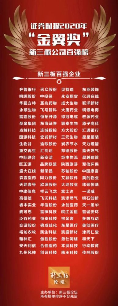 8日,由证券时报新三板论坛主办的2020年“金翼奖”新三板百强榜隆重发布。亿玛在线(股票代码:836346)凭借近三年的精彩表现与业绩,实力入选“百强企业”!